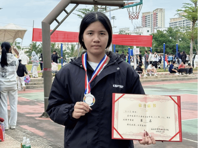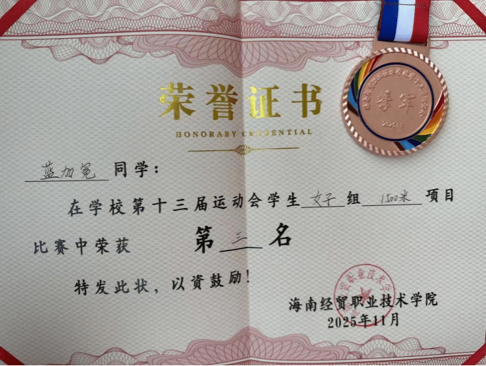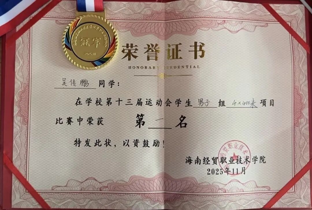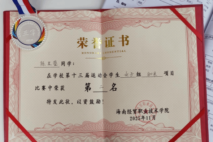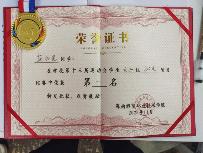 踏上赛道时,紧张与兴奋在心底交织。发令枪响,我循着既定节奏奔跑,耳边是同学们的加油呐喊声,阳光洒在跑道上,也映着我的汗水。后半程的疲惫如期而至,双腿酸胀、速度减缓,放弃的念头冒出,但听见伙伴“稳住节奏,坚持住”的呼喊和同学们的加油声,我攥紧拳头加快摆臂往前冲。冲过终点线的瞬间,所有坚持都有了意义。这场800米,不仅是速度的比拼,更是对意志的磨砺,我为自己的不放弃骄傲。
