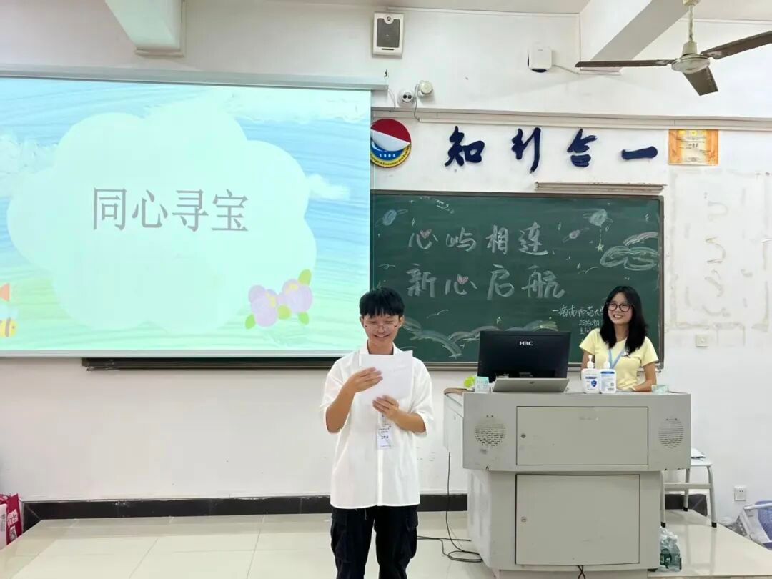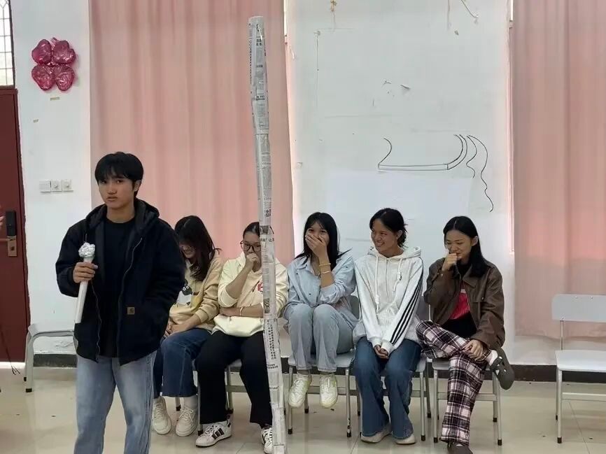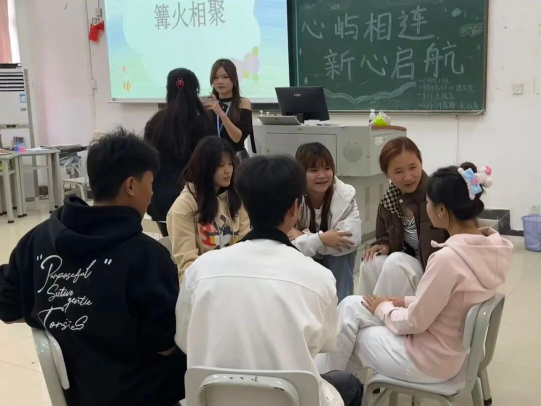 本次活动精心设置“岛屿风暴”“篝火相聚”“海岛物语”“同心寻宝”四大环节,循序渐进达成“破冰—熟识—协作—凝聚”的心理融入目标。“岛屿风暴”以趣味换位快速消融陌生;“篝火相聚”借姓名与家乡接龙深化了解、拉近距离;“海岛物语”通过报纸建塔激发创意与协作,增进团队默契;最终“同心寻宝”采用后背匿名祝福,升华同窗情谊。整场活动在欢笑与感动中,切实助力2025级新生筑牢集体认同、凝聚班级向心力,为崭新大学生活注入温暖而坚实的心理能量。