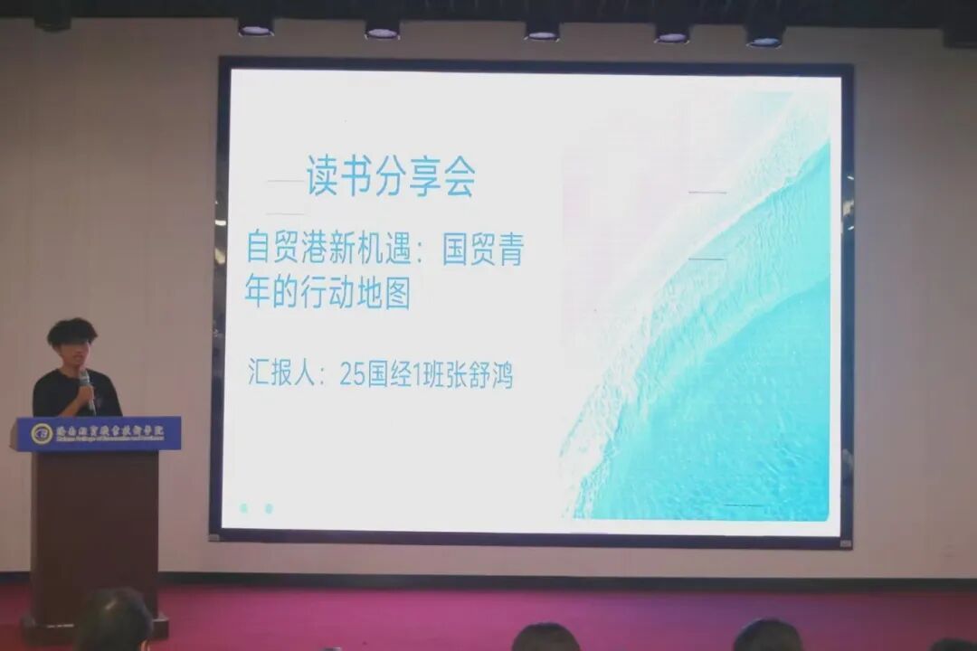 学院精心挑选并向各班分发海南自贸港建设相关书籍,涵盖政策解读、行业发展、实践案例等维度,引导学生解锁自贸港建设的“知识密码”,为分享交流筑牢理论基础。读书分享环节,各班学生代表围绕“读书感悟+个人行动”畅谈对自贸港建设的理解与规划。巴勒坚・木拉提汗同学感慨:“从边陲热土到自贸港标杆,书中的宏伟蓝图让我备受鼓舞。作为国贸学子,我将深耕国际贸易专业知识,主动投身贸易便利化实践,把个人理想融入国家发展大局,以青春实干追逐时代梦想。”