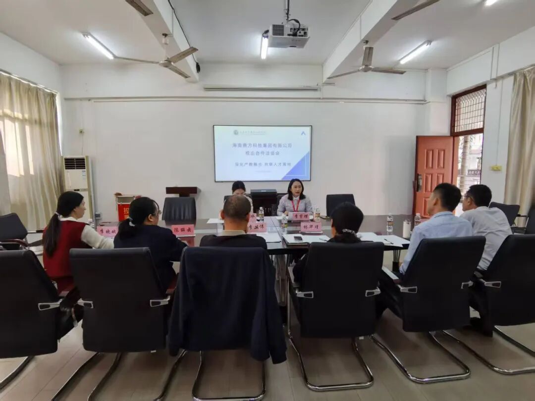 洽谈会上,双方就进一步加强校企合作,深化产教融合,共话人才培养高地进行深入讨论和交流。海南鼎方科技集团有限公司为积极响应海南自贸港建设对应用型国际贸易人才的迫切需求,探索产教融合创新模式,提出校企共同构建以“高校教师为核心导师”的新型校企合作模式——为我校选派教师提供定制化的“自贸港贸易实务特训营”,培养“双师型”教师。该合作模式旨在充分发挥高校师资力量与育人优势,结合海南鼎方科技集团有限公司产业实战平台与政策资源,实现“教师发展、学生成才、学校提质、产业增效、政府满意”的多方共赢局面,为海南自贸港建设输送高质量、留得住、用得上的青年人才。