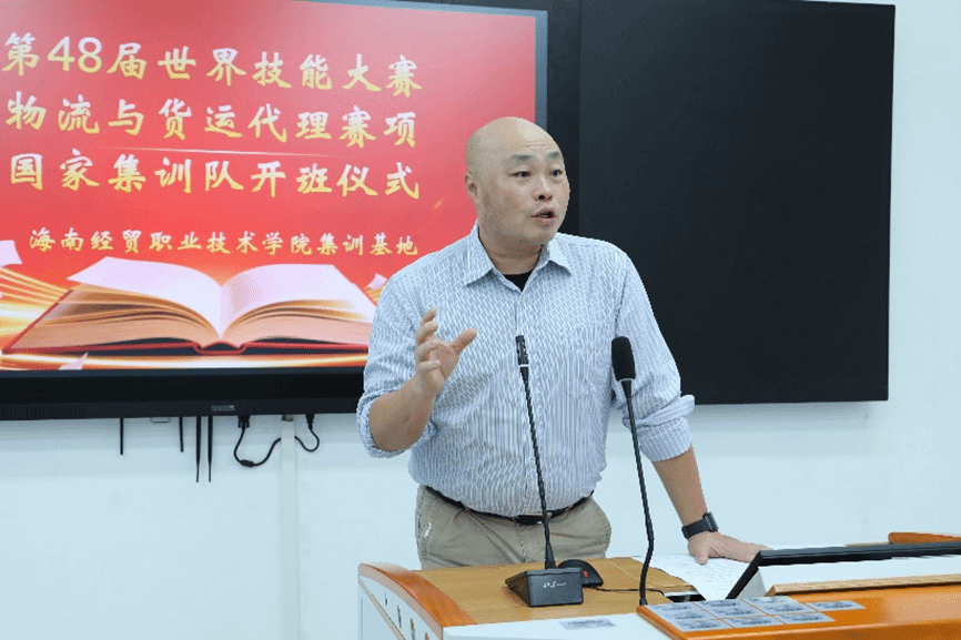 专家组组长吕秀文在讲话中对海经贸的办学质量与专业实力给予了高度肯定。吕总表示,物流与货运代理赛项作为世赛中极具挑战性的项目之一,对选手的专业素养、实操能力和综合应变能力提出了极高要求。吕总围绕第48届世界技能大赛物流与货运代理赛项的技术要点、备战策略进行了深入解读,鼓励选手们以此次集训为起点,夯实理论基础、强化实操技能,通过丰富多彩的集训,学有所成、学有所得、学有所获,以最佳状态迎接世赛挑战。