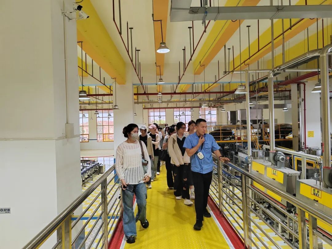 活动现场,在企业工作人员的带领下,学院学生代表依次参观了海南椰树集团自动化生产流水线,全流程智能化、标准化的生产作业,让同学们直观感受到企业先进的生产工艺与严谨的品控管理。工作人员还为师生详细讲解了海南椰树集团的发展历史,同学们认真聆听企业的发展故事,感受企业艰苦奋斗、改革创新的发展精神,深入了解企业在品牌建设、市场拓展、产品研发等方面的发展历程与辉煌成就,进一步增强了对海南本土企业、本土产业的认同感与自豪感。